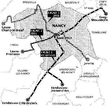 - Projets. La ligne 2 est prévue pour 2003, la troisième à l'horizon 2006, en même temps que le TGV-Est. Nancy a entrepris